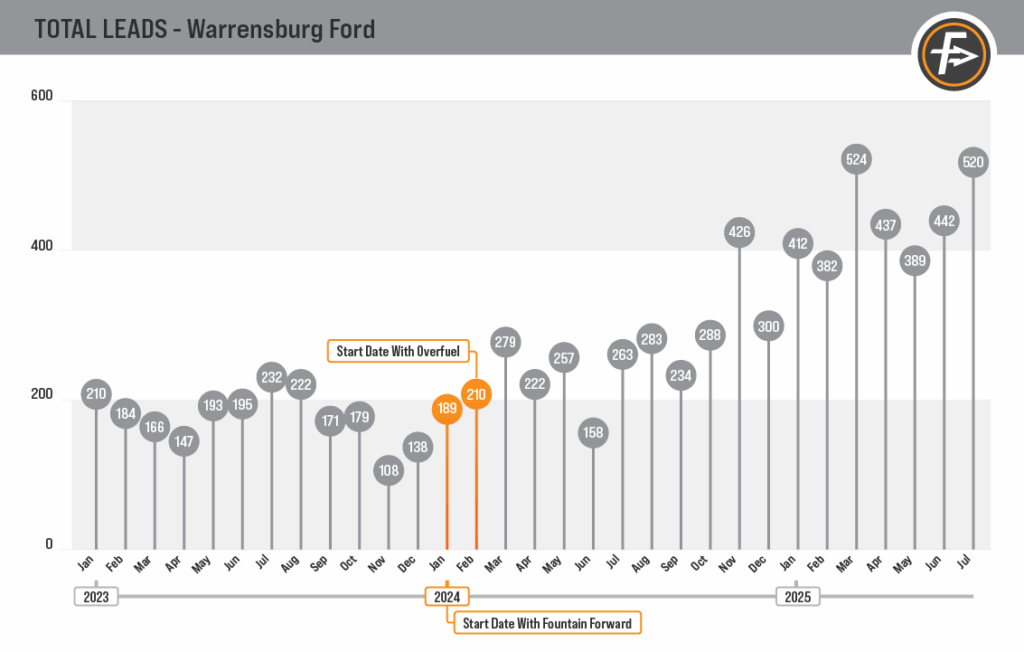 This was a MAJOR decision as Overfuel is not a certified vendor. This was a decision driven by data and analytics that many other dealerships are too cautious to make. A huge shout-out to the Warrensburg Ford team for trusting the process, trusting the numbers, and making the choice that’s best for their dealership.